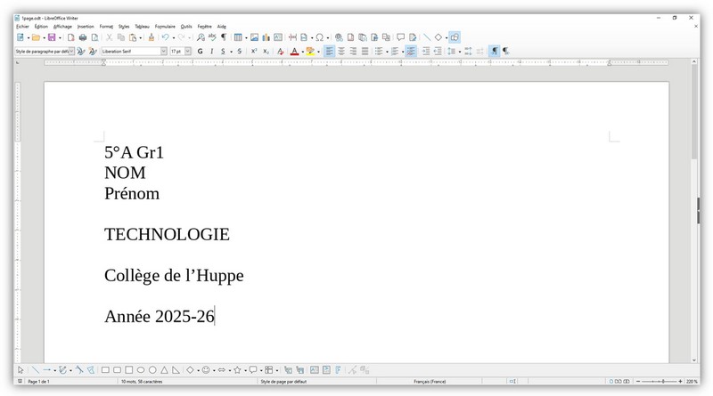 1°/ Lance libreoffice writer 2°/ Sauvegarde ton travail |